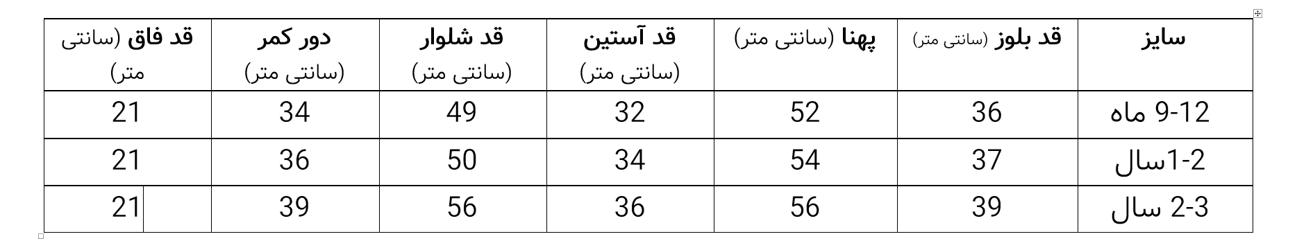 لطفا قبل از ثبت سفارش جدول سایز بندی و توضیحات را مطالعه نمایید لطفا 1 تا 3 سانت اختلاف در اندازه گیری را لحاظ نمایید