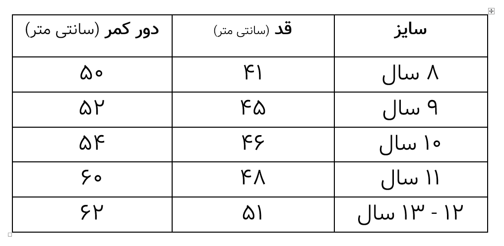 لطفا قبل از ثبت سفارش جدول سایز بندی و توضیحات را مطالعه نمایید لطفا 1 تا 3 سانت اختلاف در اندازه گیری را لحاظ نمایید